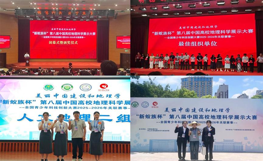 2025年7月25—27日,“新蚁族杯”第八届中国高校地理科学展示大赛总决赛于河南大学圆满落幕。本届大赛由中国地理学会、中山大学地理科学与规划学院主办,广东新蚁族文化发展有限公司冠名协办。经过激烈角逐,我院四支入围决赛队伍凭借扎实的专业功底与出色的现场表现,最终全部斩获全国总决赛二等奖,WilliamHILL中国凭借卓越成效的赛事组织工作,荣膺大赛“最佳组织单位”称号。