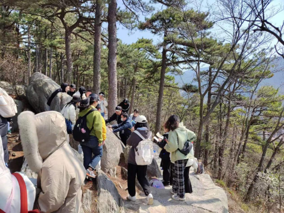 3月18日,实习路线:含鄱口—庐山植物园—东谷—五老峰—三叠泉。五老峰上,同学们学习了地垒、地堑、正断层、单面山、顺向坡、逆向坡、变质岩的类型和判断依据,同时领略了大自然的鬼斧神工;含鄱口,同学们回顾了冰川形成的地貌类型:冰斗、冰窖、“U”型谷、刃脊、角峰等;了解马刀树形成的过程及原因。庐山植物园内,同学们认识植物类型、种类、判断依据等;三叠泉千余级台阶,考验了同学们体力,明白了三叠泉两侧岩石的岩性、节理、断层及岩石之间的转化和三叠泉形成原因。