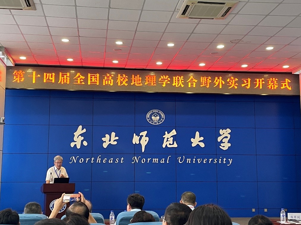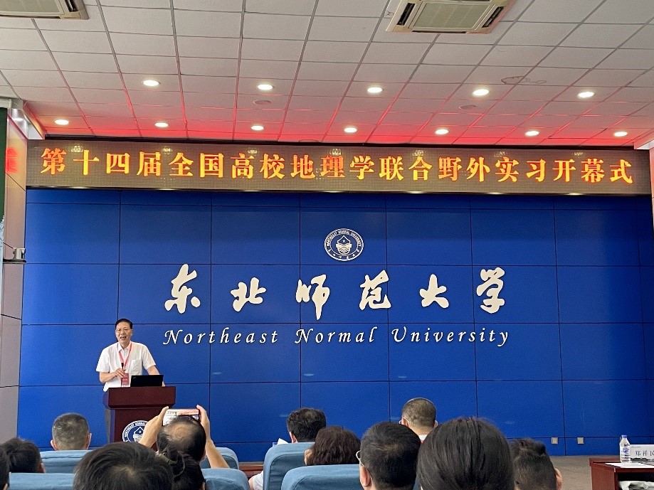 7月29日上午,联合实习开幕式在东北师范大学举行,开幕式由中国地理学会副理事长,东北师范大学吴正方教授主持。东北师范大学党委副书记王延教授、教育部高等学校地理科学类专业教学指导委员会秘书长彭建教授、全国大学生地理学野外联合实践教学高等联盟理事长郑祥民教授先后致辞讲话。郑祥民教授指出,野外实习是地理学人才培养的重要部分,要和国家战略结合起来,在野外实习中培养学生发现问题、解决问题能力,并对此次联合野外实习提出保证安全、吃苦耐劳、团队协作等几点要求。随后,东北师范大学WilliamHILL中国王升忠教授详细介绍了此次联合实习方案,将实习线路的设计理念概括为:白山黑土黄海绿江,穿时跨域穷理寻章。