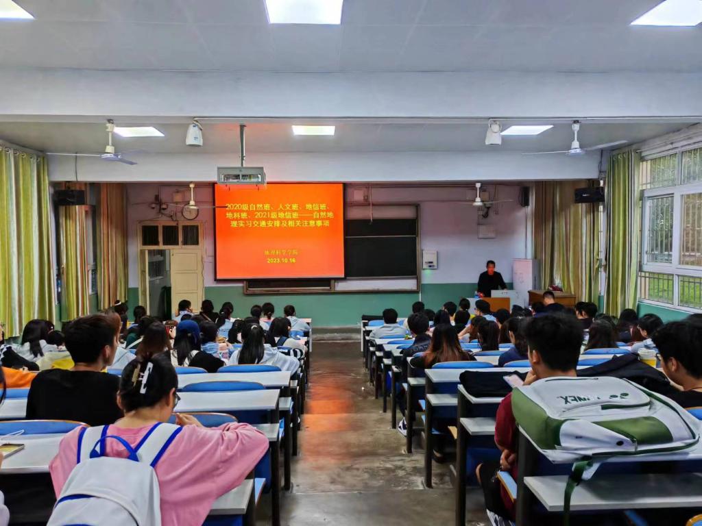 10月16日下午,WilliamHILL中国在教二楼第二阶梯教室、第三阶梯教室召开自然地理实习动员大会。我院党委副书记朱明、自然地理与资源环境系主任李秀美,专业实习指导教师张辰光、李宗盟,专业班主任顾治家、李啸啸,团委副书记曹鹏鹏、实习实训中心副主任范宝伟老师到会,为2020级地理科学专业、自然地理与资源环境专业、人文地理与城乡规划专业、地理信息科学专业和2020级地理信息科学专业271名本科生进行实习动员,会议由李秀美主任主持。