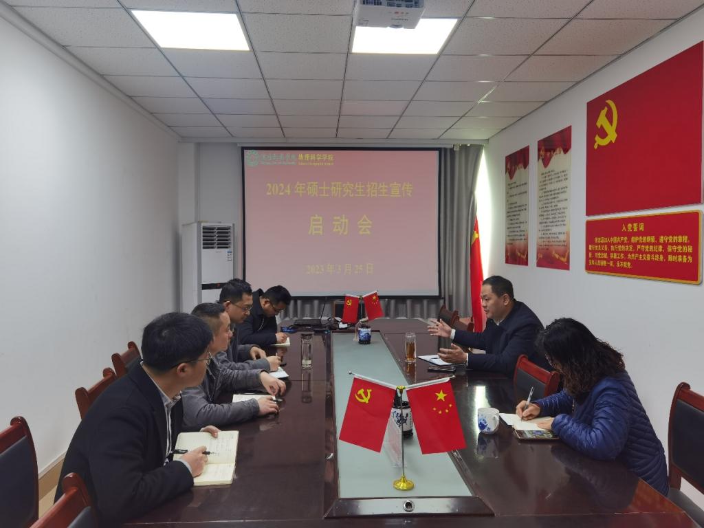 为优化生源结构,进一步提高我院研究生生源质量和报考规模,切实做好2024年硕士研究生招生宣讲工作,3月25日,我院于理科楼南楼403会议室召开2024年硕士研究生招生宣讲启动会。院长牛继强、副院长刘明华、研究生工作秘书闫军辉、相关专业负责人等参加了会议,会议由副院长刘明华主持。