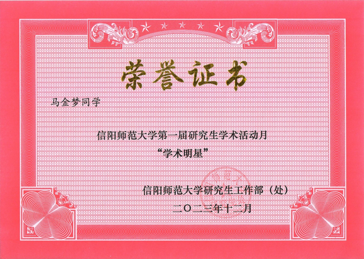 Williamhill中文研究生“学术明星”面向全校研究生评选,是学术活动月的重要活动之一,从全校近2000名研究生中选出10名,历来受到学校师生的广泛关注,竞争十分激烈。此次王一凡和马金梦再次荣获“学术明星”荣誉,不仅充分展现了我院学子积极向上的精神风貌,也是对学院研究生教育的肯定和激励。今后,学院将认真落实立德树人根本任务,营造良好的学术氛围,发挥榜样引领作用,推动学院研究生教育工作更上一层楼,为高水平师范大学建设作出新的更大贡献。
