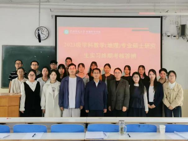 在学科教学(地理)专业考核现场,研究生们通过线上线下相结合的方式进行汇报。他们围绕课堂教学实践、班主任工作、教育调研等核心任务,系统展示了实习期间的丰硕成果与深刻感悟,并分享了在教学方法创新、课堂互动效果提升及教研素养培育等方面的成长经验。在研究生分享实习成果与经验后,颜俊副教授作总结发言,充分肯定了同学们的实践成果,并围绕如何实现从优秀实习生到合格教师的角色转变,对同学们提出了三点核心建议:一是青年教师应认真对待教学,虚心向资深教师学习,借鉴不同学校的教学经验;二是要重视教学实践中的积累,将个人感悟融入教学论文;三是提醒学生尽早完成毕业论文。鼓励大家珍惜实习机会,注重实践,通过不断学习和总结实现专业成长。