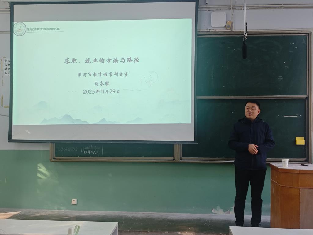 11月29日上午,WilliamHILL中国2004级校友、漯河市教育教学研究室地理教研员刘永胜于J2-T2教室为我校师生作了题为“求职、就业的方法与路径”的主题交流报告。刘老师结合自身从一线地理教师到教研员的成长经历,围绕地理教育现状、职业认同、深造与就业选择、入职前准备等方面展开分享,鼓励同学们尽早树立职业目标,注重教学能力与综合素养的双重提升,并就现场提问进行了细致解答。本次报告会为同学们提供了宝贵的就业指导与经验借鉴,进一步增强了学生的职业规划意识与从教信念。