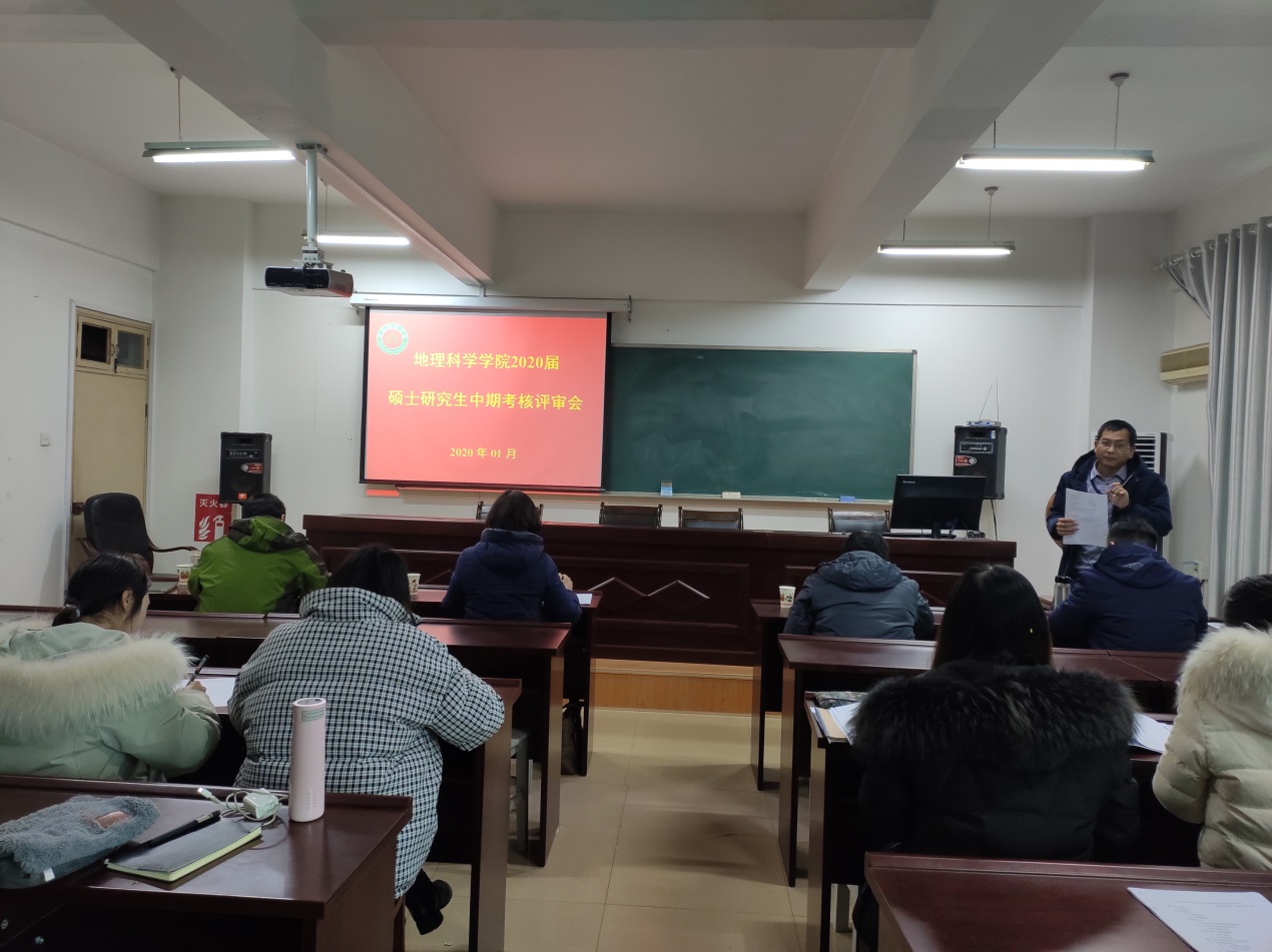 根据信阳师范学院硕士研究生培养管理相关规定,地理学院于1月10日,在理科楼南楼403和410室举行2020届硕士研究生中期考核评审会。王义民教授、刘明华教授、高军波教授及毕业生导师莅临评审会并担任评委,所有在校研究生30余人参加了此次评选会。会议分别由研究生工作秘书闫军辉博士和研究生班主任郑茜博士主持。