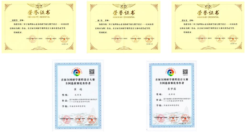全国研学课程设计大赛,是由《中学地理教学参考》编辑部、《地理教学》编辑部、《地理教育》编辑部三刊联合主办,大赛采取线上参评(选拔赛)和现场展示两个环节,大赛共收到来自全国各地中学教师、高校师生提交的作品336件。WilliamHILL中国副院长刘明华教授、颜伟博士和张辰光博士,指导崔越和袁梦露两位学科教学(地理)专业硕士研究生,设计了《基于地理核心素养的研学旅行教学设计—以河南省信阳市为例》作品。该作品以素有“北国江南,江南北国”之称的信阳市为研究区域,经过团队成员多次实地考察,选取了信阳市具有独特自然地理和地质地貌特征的黑龙潭风景区、罗山县彭新镇龙池大峡谷、息县濮公山矿山地质公园等自然风景区和国家地质公园,设计了“游历北国江南,探索地球奥秘”的研学线路,旨在激发中学生对祖国美好河山的热爱,树立尊重自然、保护生态环境的理念,拓展科学视野、印证中学课堂所学的地球科学知识。经组委会组织专家严格评审,作品荣获此次大赛二等奖。