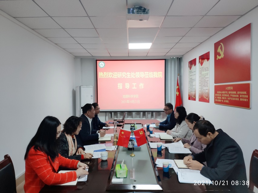 此次调研主要聚焦2022年国家学位授权点专项评估工作。会上,刘明华副院长结合《地理学学科学位授权点专项评估要素》和《地理学博士、硕士学位授权点申请基本条件》,汇报了我院地理学学位授权点建设历程和发展现状,详细介绍了硕士点师资队伍、人才培养、质量保证和教学支撑、社会服务等情况。牛继强院长热烈欢迎研究生处莅临WilliamHILL中国,汇报了评估工作的主要进展情况,并简要汇报了我院在师资队伍建设、招生宣传、培养过程的措施和做法。牛院长指出,学院高度重视地理学硕士学位授权点的建设和评估工作,制定了学位授权点专项评估工作方案,成立了评估工作领导小组,对照评估指标体系,逐条自查。目前已完成基础资料搜集、汇总和整理工作,组建了工作专班开展学位授权点自我评估总结报告撰写工作。沈文慧处长对我院地理学学位授权点取得的成绩和专项评估准备工作给予充分肯定。沈处长指出,地理学硕士点建设标准高、要求严,注重平时资料积累,工作非常有前瞻性。尤其是利用各种场合和机会进行招生宣传、“集团军作战”等创新做法值得推广和借鉴。希望学院接下来充分挖掘亮点、凝练特色,将专项评估工作做细、做实,确保评估工作顺利完成。