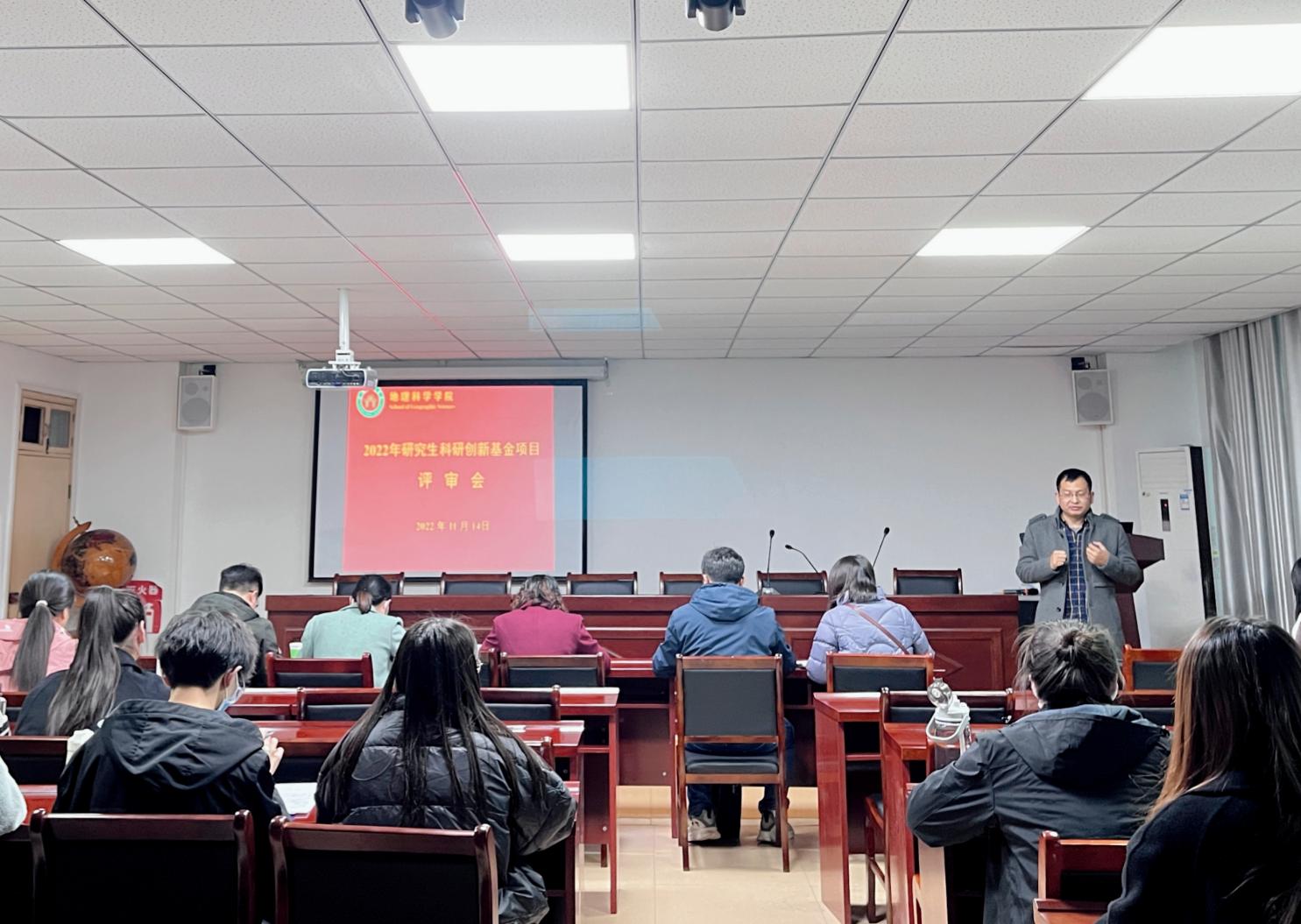 评审会上,闫军辉副教授首先对各位评委的到来表示感谢,并宣读了此次创新基金评审规则和具体要求。接着,19位申请人分成专硕和学硕两组,按照抽签顺序分别从选题背景和意义、国内外研究现状、研究思路、研究方法、研究内容、经费预赛等方面进行了汇报。评审专家认真听取了汇报,分别从项目的可行性、创新性和突破点等方面进行了点评和评分。经过激烈角逐,王一凡、程启先、吕金金、张琳琳和李昊格共5位同学被推荐参加校级评选。刘院长对各位评委和参会研究生表示感谢。刘院长指出,此次参会评委均为评审经验丰富的教授、博士,硕导,专业涵盖自然地理、人文地理、地理信息系统和学科教学等专业,并严格遵守回避原则,确保项目评审的公开、公正、公平,力图将高水平、重创新的项目遴选出来参加学校角逐。刘院长强调,申报项目的过程也是我们不断进行学术思考的过程,参与即是进步,希望参与本次评审会的同学摆正心态,积极参与学院组织的各项科研活动,树立创新意识,注重自身科研能力和实践能力的培养,努力成为一名创新型的科研人才。入围同学按评审专家要求认真修改、完善申请书,并预祝顺利通过学校评审。