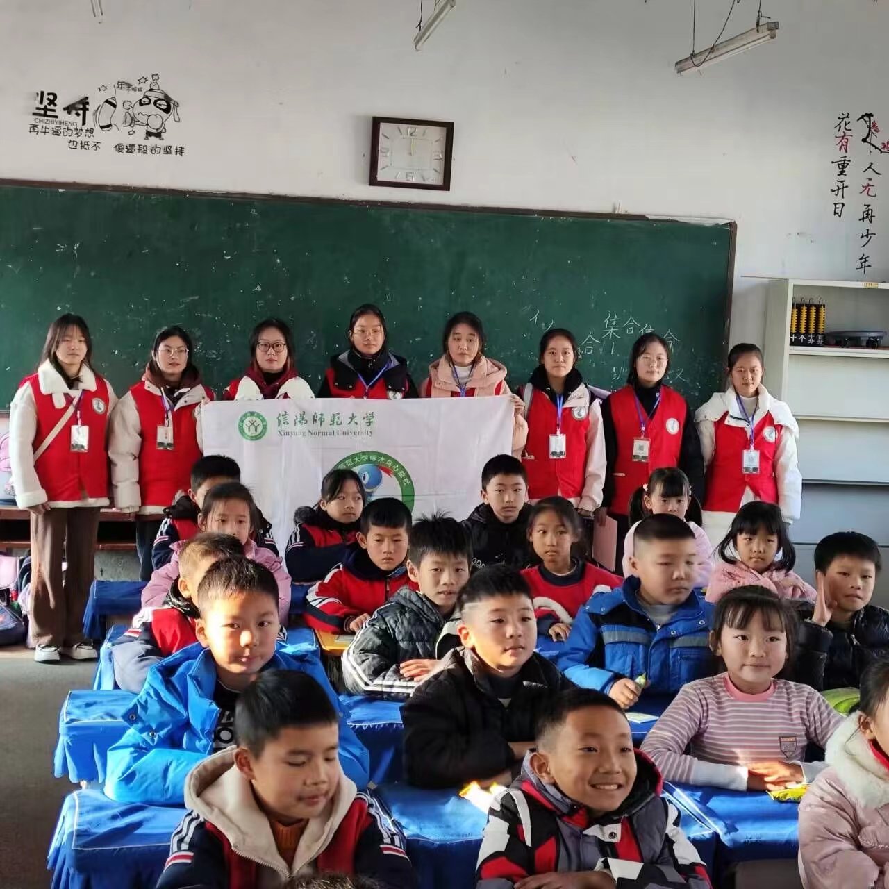 12月12日,啄木鸟心益社联合大学生心理健康教育中心于信阳市浉河区东双河镇第一小学开展“牢记历史,珍惜和平”爱国主义宣讲活动。啄木鸟心益社社长高睿欣与志愿者们共同参与此次活动。