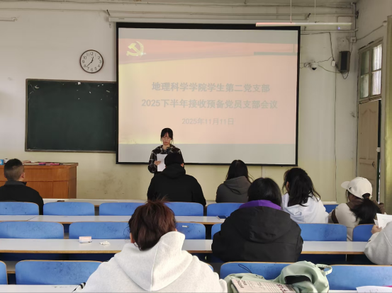 11月11日,我院学生第二党支部2025年下半年接收预备党员支部大会于教三104顺利召开。支部书记魏巍、支部全体党员及2025年下半年发展对象共同参会。会议由魏巍主持。