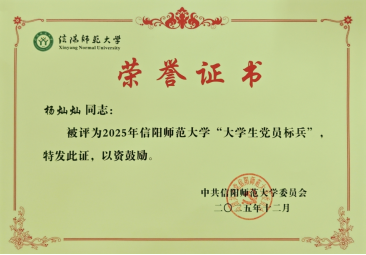 杨灿灿荣获“大学生党员标兵”荣誉称号,既是对其个人努力与成绩的充分肯定,也是我院长期以来坚持立德树人根本任务、高度重视学生思想政治工作和党员培养教育工作的成果体现。我院将持续加强学生党建工作,着力培养更多有理想、敢担当、能吃苦、肯奋斗的新时代优秀青年,引导广大学生以标兵为榜样,坚定信念、勤奋学习、矢志奉献,为实现中华民族伟大复兴的中国梦贡献青春力量。
