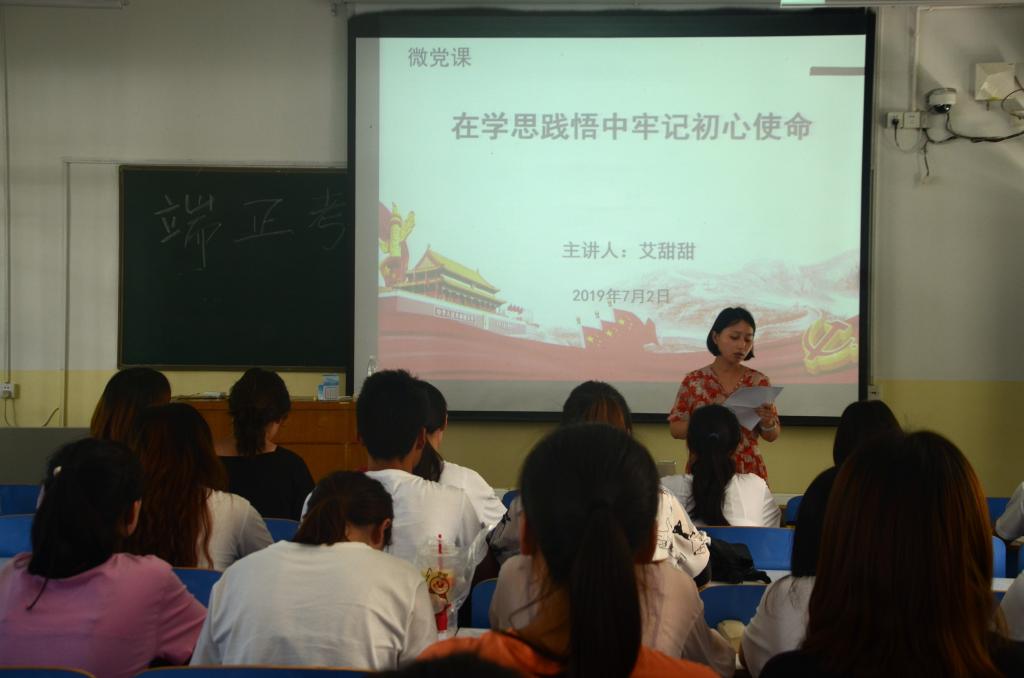 7月2日,WilliamHILL中国学生第一党支部书记艾甜甜同志于教三03为支部党员讲党课,主题为“在学思践悟中牢记初心使命”。学生第一党支部全体党员、入党积极分子三十余人参加了此次党课学习。