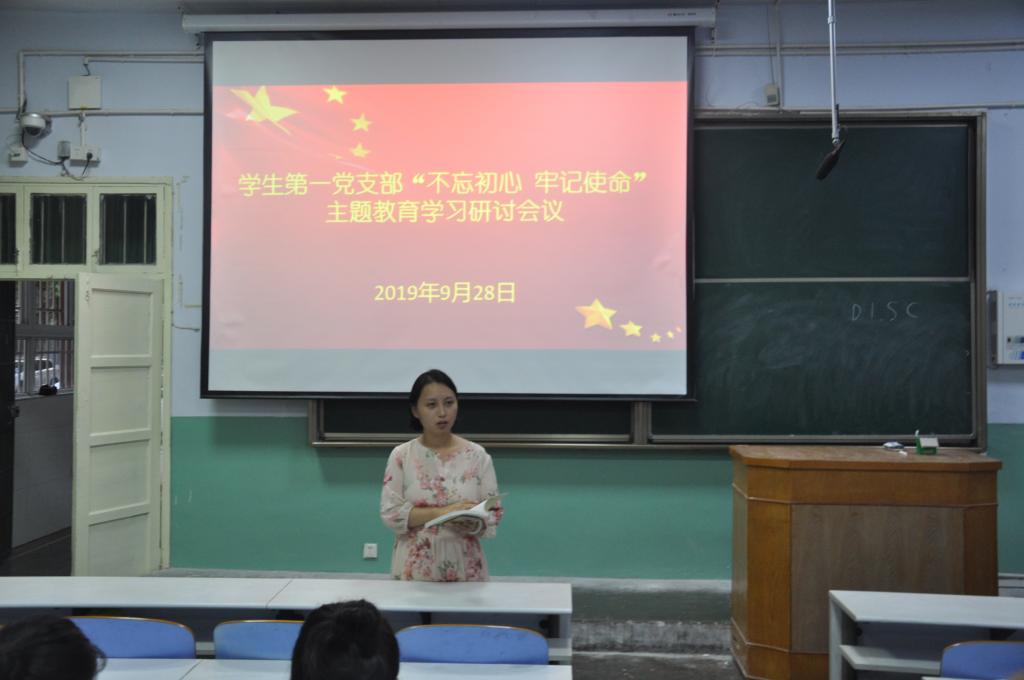 会议伊始,艾甜甜强调了此次开展“不忘初心 牢记使命”主题教育的重要意义,并倡导全体党员不断加强理论学习,用新思想武装头脑、指导实践、推动工作,自觉为新时代党的历史使命努力奋斗。她指出,开展这次主题教育学习会议,要做到思想建党,理论强党,贯彻守初心、担使命的总要求,达到理论学习有收获、思想政治受洗礼、干事创业敢担当的目标。随后,第一党支部全体党员共同学习了《习近平关于“不忘初心、牢记使命”论述摘编》,并结合自身实际开展了充分讨论。