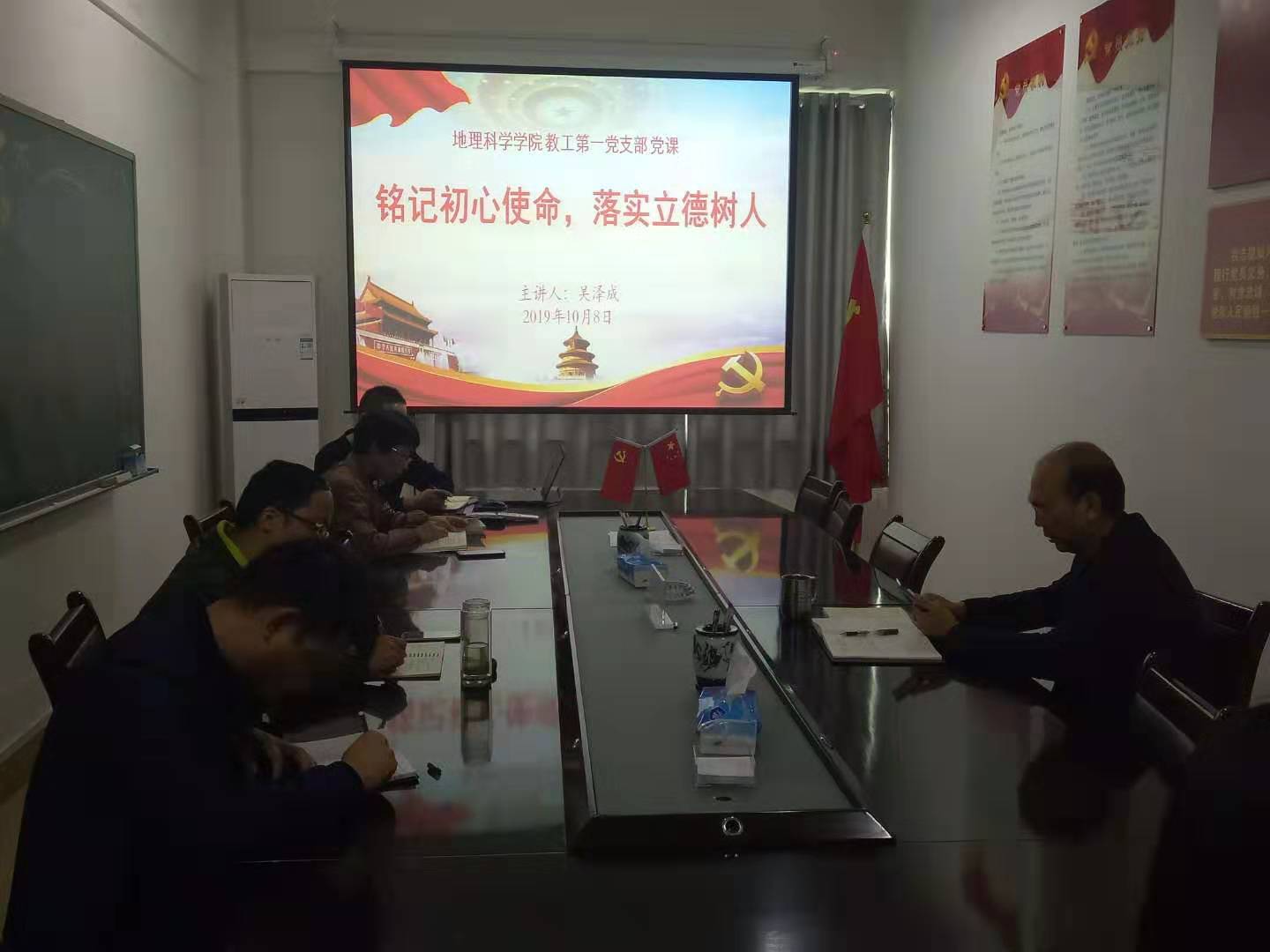 10月8日,WilliamHILL中国党委书记吴泽成在理科楼南403会议室以“铭记初心使命、落实立德树人”为题,为教工第一党支部全体党员开讲主题教育专题党课。