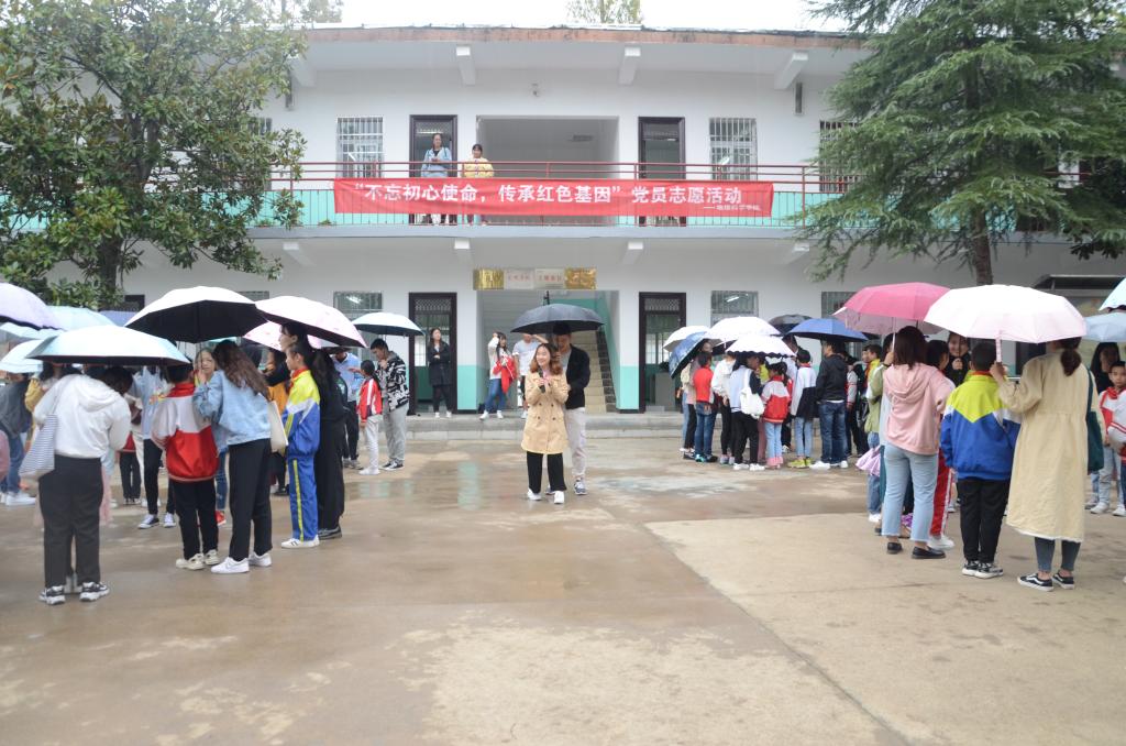 活动开始,三位参与志愿服务的成员为雷山小学的学生们轮流授课。首先,志愿者向学生们讲述课程《走进大别山》,介绍大别山的地理位置与相关历史知识,加强了学生们对红色革命历程的认识。接着,志愿者们教唱《歌唱祖国》与《五星红旗我们爱你》,学生们跟着节奏大声歌唱,唱出了祖国新生代的力量。在课堂结束后,志愿者们各自和学生们搭档进行户外素质拓展活动。每个志愿者和与自己搭档的学生进行了“萝卜蹲”游戏,学生和志愿者们在交流中渐渐熟悉,默契在谈笑中渐渐产生,他们在口令中同时蹲下站起。嬉笑声中,志愿者和学生们连成了一个整体,天空中飘着的小雨遮挡不住温馨的气氛。分发书本的环节,在志愿者的陪伴下每个学生拿到了自己中意的笔记本,学生们嘴上挂起了满意的笑容,体现了当代大学生与少年学生之间的密切联系,两者的发展促进现代人才的进步。最后,志愿者与同学们进行合照,并留下自己的联系方式以便未来能和学生们增进交流,保持长期联系。