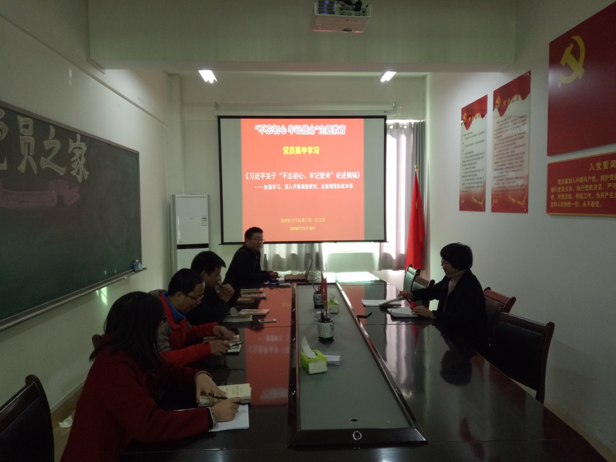 最后,全体党员集中学习了《习近平关于“不忘初心、牢记使命”论述摘编》——加强学习,深入开展调查研究,全面增强执政本领。学习结束后大家又进行了热烈的讨论,共同认识到作为教育者在教育教学工作中应该树立“问题意识”,在做好本职工作的过程中,不断进行调查研究,使研究与工作实践相互促进,提高工作的效率和质量。