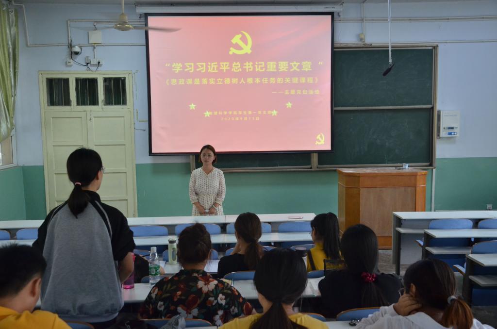 活动伊始,支部党员共同学习《思政课是落实立德树人根本任务的关键课程》。随后,大家结合个人感悟进行交流讨论,与会同志踊跃发言。大家一致认为,大学生党员要自觉增强四个自信,厚植爱国主义情怀,把爱国情、强国志、报国行自觉融入坚持和发展中国特色社会主义、建设社会主义现代化强国、实现中华民族伟大复兴的奋斗之中。最后,艾甜甜作总结讲话,她指出,支部党员以后大部分都要从事教师职业,现在要加强自身修养,练好内功,以后教学中用习近平新时代中国特色社会主义思想铸魂育人,培养正确的世界观、人生观、价值观。