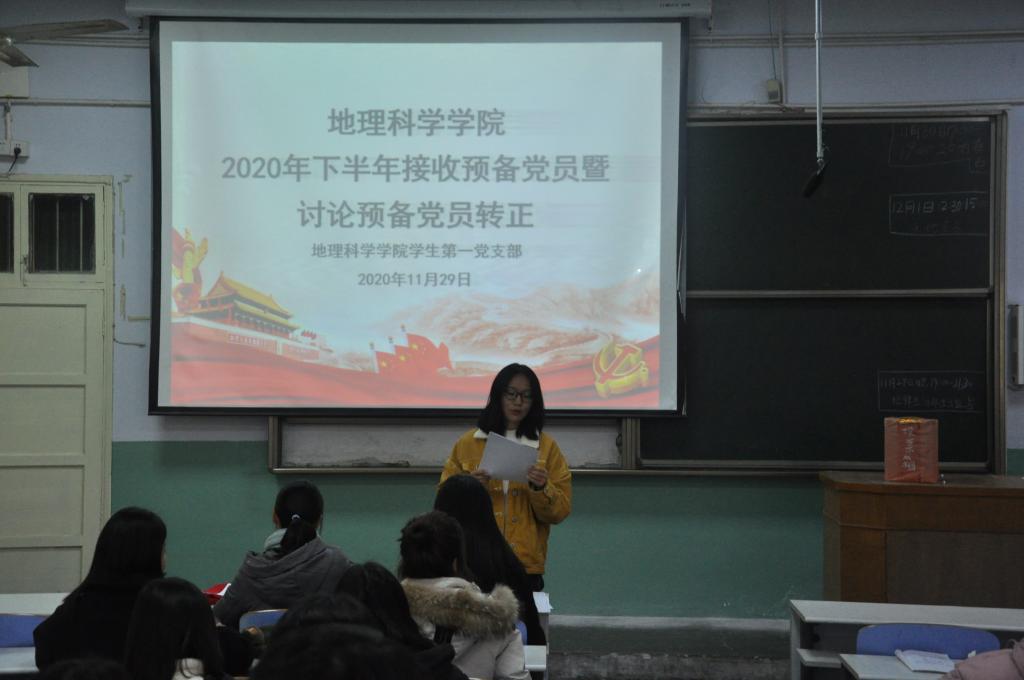 会议伊始,张盼盼对会议内容和主要流程作简要阐述并宣读预备党员发展名单。郭婧雯等九位发展对象依次宣读转为预备党员申请,介绍自己在作为发展对象期间的学习、生活以及工作情况。入党介绍人向与会成员介绍发展对象在考察期内的表现情况,并对其能否入党表明意见。与会党员对郭婧雯等九位发展对象是否能够入党进行无记名投票表决。经投票表决,大会同意接收郭婧雯等九位发展对象成为中国共产党预备党员。随后,张盼盼带领全体与会人员进行入党宣誓。
