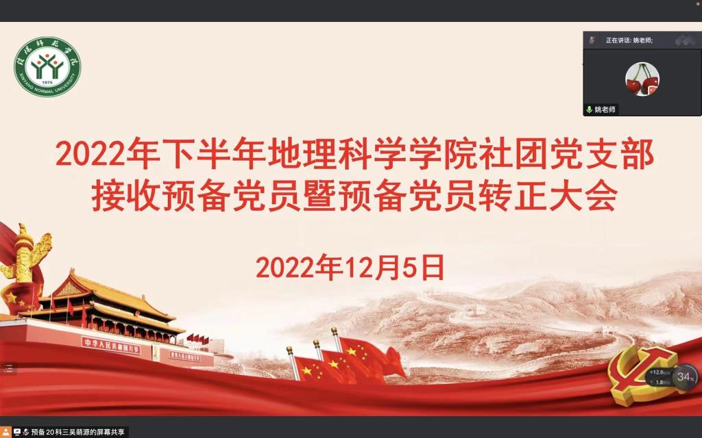 12月5日,我院社团党支部2022年下半年接收预备党员暨预备党员转正大会于线上顺利召开。支部书记姚玉坤,支部全体党员和2022年下半年发展对象共同参会,会议由姚玉坤主持。