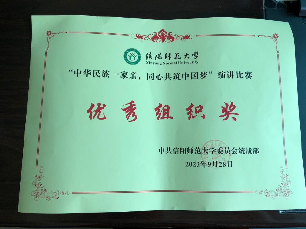 赵丹睿以“让民族团结进步之花永盛”为题,紧扣“中华民族一家亲 同心共筑中国梦”主题,围绕贯彻落实党的二十大精神和中央、省委民族工作会议精神,以生动的语言、鲜活的事例、真挚的情感,声情并茂、慷慨激昂,阐释民族团结的重大意义,充分展现了学院学子饱满的政治热情和昂扬向上的精神风貌,讲出了新时代大学生对“铸牢中华民族共同体意识”的深刻认识和实现中华民族伟大复兴中国梦的责任担当。经过激烈角逐,赵丹睿荣获校级三等奖,学院党委荣获优秀组织奖。