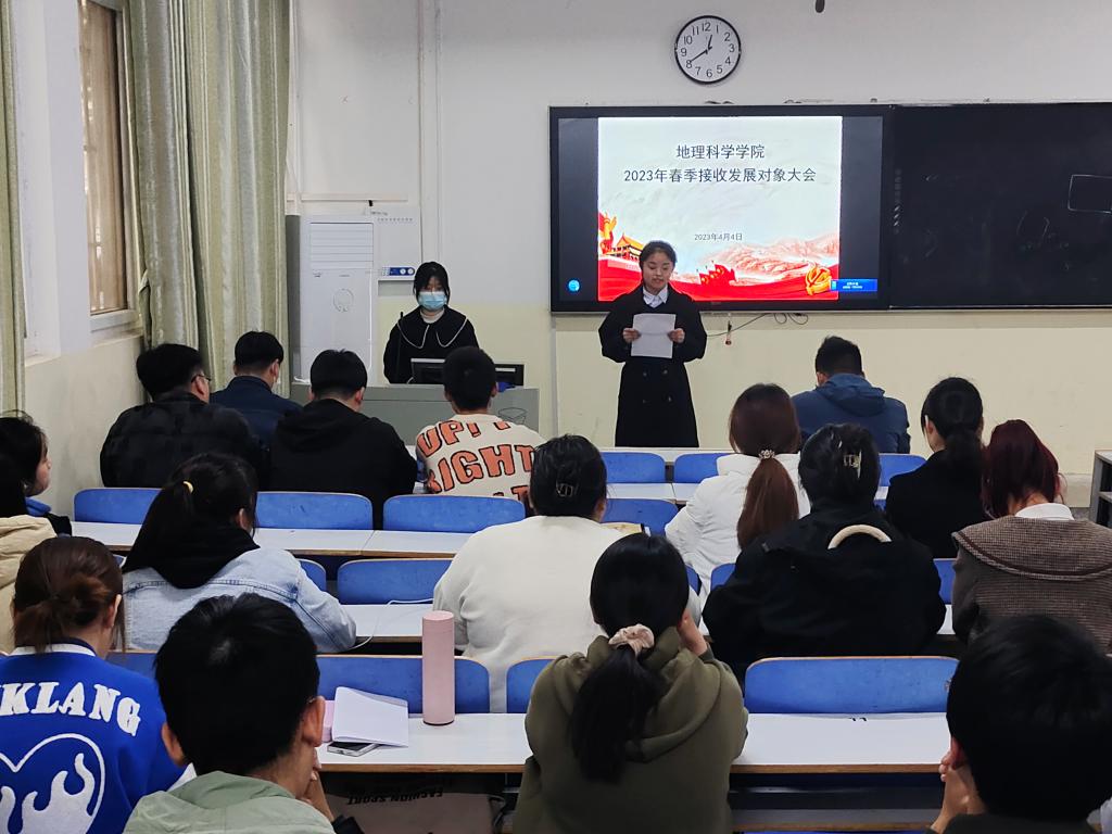 大会主要讨论徐晓丹、周崇如、马雪瑶、闫雨佳、甘晓露、姬嘉盛等六位同志能否确定为发展对象的问题。会议伊始,曹鹏鹏老师报告到会情况并宣读发展对象名单。接着,徐晓丹等六位同志依次上台就入党动机、思想意识、学习情况、工作情况等方面汇报自身在培养考察时期的表现情况。然后,培养联系人李昂、李怡向党支部汇报徐晓丹等六位同志在培养考察期间的考查情况,并对其能否确定为发展对象发表意见。与会党员对这六位同志能否确定为发展对象进行充分讨论。最后,党支部在综合六位候选人各方面的表现以及党员、群众投票情况后,由曹鹏鹏汇报研究结果:同意确定徐晓丹、周崇如、马雪瑶、闫雨佳、甘晓露、姬嘉盛六位同志为2023年春季党员发展对象,并按照组织程序报上级党组织审查、批准。