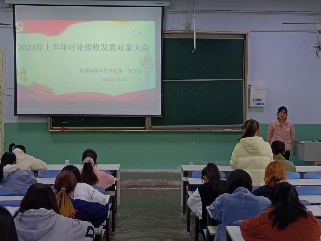 为进一步壮大党员队伍,加强和培养党的后备力量,为支部增添新活力,4月4日,我院学生第一党支部于教2梯二召开支部大会,讨论确定2023年春季发展对象。支部书记艾甜甜与党支部全体党员出席会议。会议由邵梦瑶主持。
