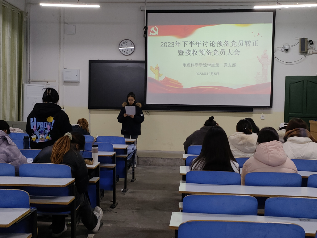 12月5日,我院第一党支部于教三01顺利举行2023下半年接收预备党员暨预备党员转正会议,支部书记艾甜甜、支部全体党员、2023年下半年发展对象共同参与此次会议。会议由艾甜甜主持。
