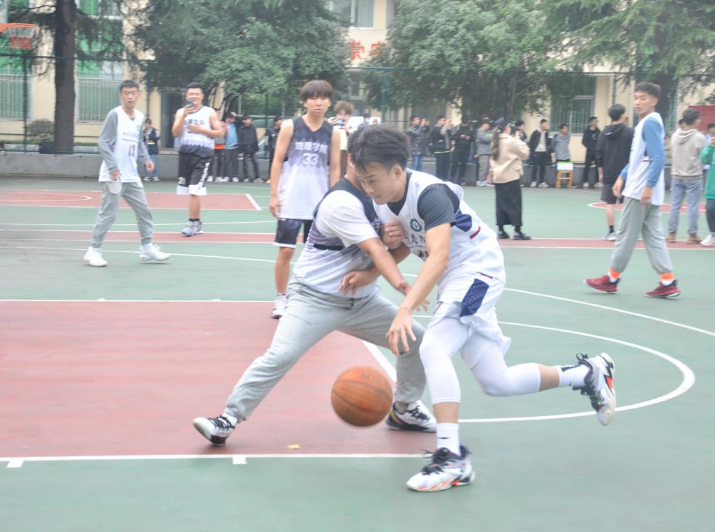 比赛尚未开始,观众已迫不及待,加油声、欢呼声响彻篮球场。裁判的一声哨响即刻点燃赛场气氛,比赛正式开始。赛场上,双方队员活力高涨,你争我夺,投球防守,动作干净利落。比赛紧张而激烈,对阵双方比分一度接近,队员们出色的配合、迅速的回防、精妙的传球和精彩的上篮,赢得场下观众阵阵掌声,比赛逐步进入高潮。2017级部分队员由于没有掌握好节奏导致发挥不佳,但他们依然顽强拼搏,奋起追击。经过激烈的角逐,最终,2018级篮球队险胜2017级篮球队。