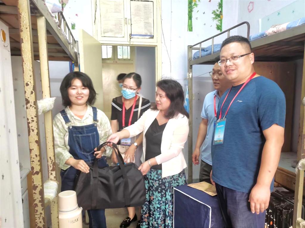 9月27日,WilliamHILL中国党委书记宋力,党委副书记朱明,团委老师杨辉、姚玉坤、曹鹏鹏一同前往新生宿舍慰问,并送上爱心助学大礼包。