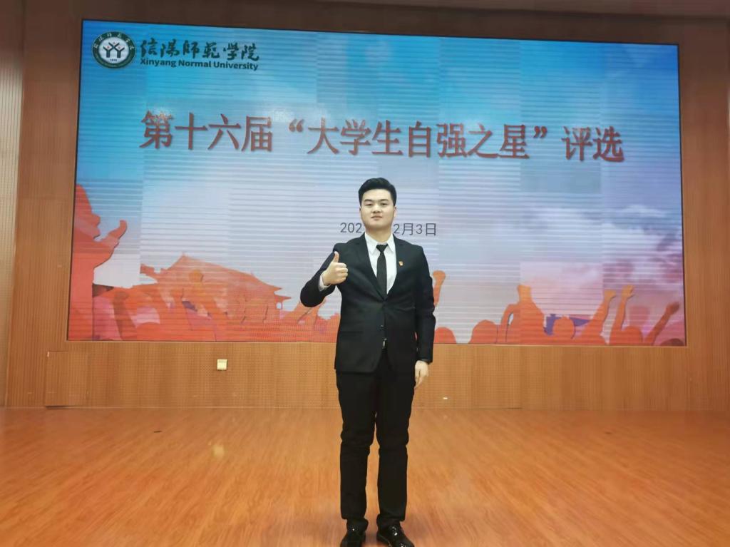 经过张世可的细心准备,其先进事迹在校团委“自强之星”宣传专栏获得诸多点赞与评论支持。12月3日,经过现场演讲、评委打分,张世可最终从25名候选人中脱颖而出,被评为信阳师范学院第十六届“大学生自强之星”。