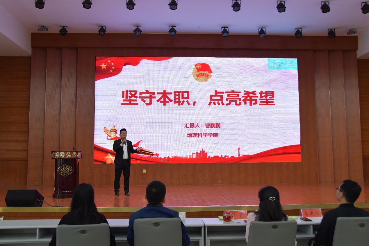 为深入贯彻落实习近平总书记关于青年工作的重要思想和视察河南重要讲话重要指示,认真贯彻省第十一次党代会精神和共青团十八届六中全会精神,按照省第十五次团代会、团河南省十五届二次全会的工作部署,2022年4月18日,校团委在逸夫楼报告厅举办了信阳师范学院共青团基层团干部2022年度“微团课”大赛,校宣传部副部长高国栋、校团委副书记常青、土木工程学院党委副书记冀鹏、传媒学院播音主持专业老师及各学院选拔的团委老师参加,我院团委副书记曹鹏鹏以《坚守本职,点亮希望》为主题展开演讲,经过评委老师评选,曹鹏鹏老师荣获“一等奖”。