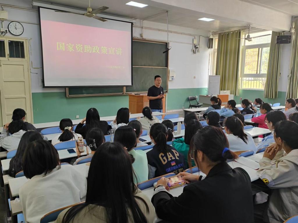 宣讲会上,曹鹏鹏对资助政策进行了详细而专业的解读,着重强调了建档立卡家庭的资助政策,希望能够切实解除家庭经济困难学生的后顾之忧。他围绕资助政策体系中的各项内容作了相关的解读,让同学们对“奖、助、贷”等国家现有资助政策有进一步了解。详细讲解了“资助对象”、“资助标准”、“资助人数”以及“资助条件的评定细则”,以确保同学们能够对资助政策有一个全面的认识。同时希望同学们合理使用奖助学金,并且希望大家能以正确的态度对待奖助学金的评选,要学会感恩,以积极向上、自强感恩的心态面对生活,报效祖国和社会。