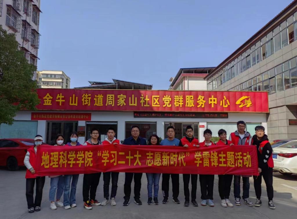 雷锋精神记心中,宣传知识强使命。3月5日上午,我院师生前往周家山社区开展主题活动,共同学习二十大和雷锋精神。在学院党委书记宋力、党委副书记朱明的带领下,志愿者与社区工作人员一起宣读入党誓词并观看《学习雷锋》电影。活动中,青年志愿者们积极打扫社区周围环境、为老人整理房间、贴心问候老人,现场进行自然灾害知识宣讲。活动结束后,宋力、朱明为各位老人送上水果与贴心的祝福,大家互相挥手告别。下午,在领导老师的引导下,师生一起在理科楼403观看了关于雷锋精神的影片,进一步了解雷锋精神。