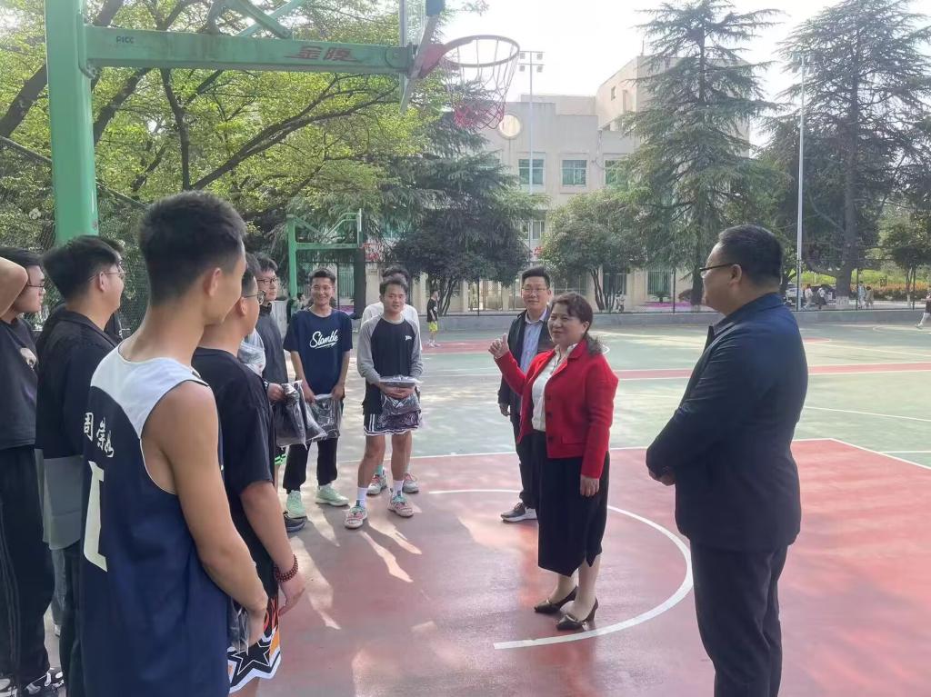 4月10日,我院篮球队在樱花球场举行队服发放仪式。我院党委书记宋力、党委副书记朱明、团委书记曹鹏鹏莅临现场为球员们发放队服。