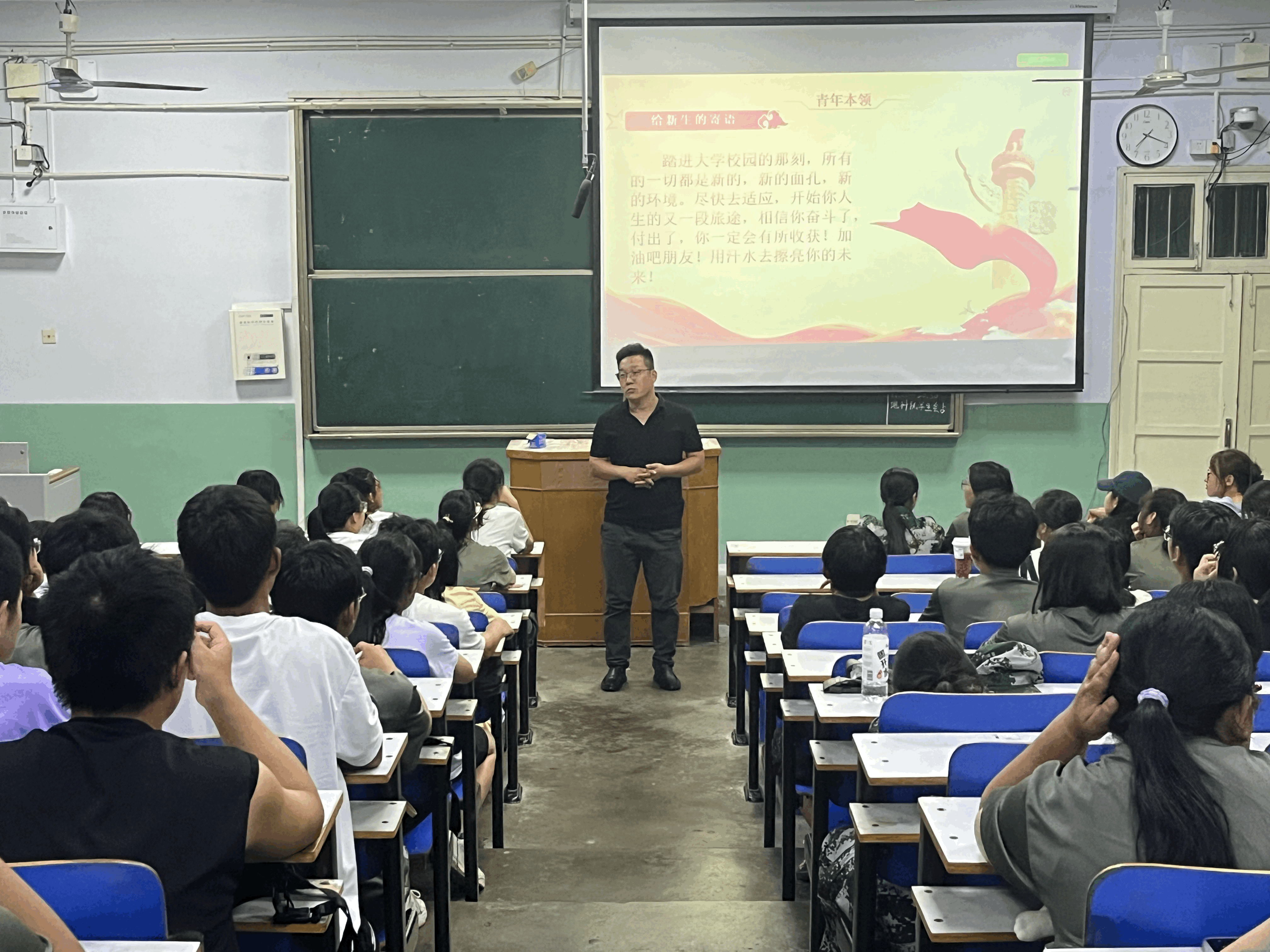 9月17日,我院于教二梯三顺利召开“金风送爽时,奋发新征程”主题团课,团委老师曹鹏鹏,2023级全体新生共同参与此次团课,团课由2020级人文地理与城乡规划班团支书张慧主持。
