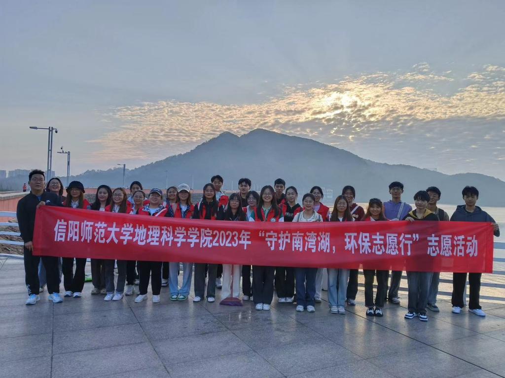 坐落在信阳市西南五公里的南湾湖风景区,风景宜人,景色优美,更是浉河水源地,信阳市生活用水水源地。守护南湾湖,就是守住上下游居民的生命之源。活动开始,曹鹏鹏对志愿者进行教育指导,帮助志愿者了解活动内容、流程以便于更好的开展活动,有利于活动快速有效的进行。活动进行中,在曹鹏鹏的带领下,志愿者们积极参与,听从工作人员安排,分配不同的工作岗位,有在南湾湖附近捡垃圾的、也有给附近居民宣传如何守护南湾湖的。南湾湖的工作人员也对我院志愿者的到来表示出了热烈的欢迎并表达了衷心的感谢。活动结束,曹鹏鹏对本次活动进行了总结,并再次强调我们要为守护南湾湖贡献出自己的一份力量,坚持绿水青山就是金山银山的理念,不仅要从我做起,更要带动身边的同学一起,为了保护南湾湖的环境更好,我们要走持续发展道路,坚持人与自然和谐共生。做生态文明建设的实践者,推动者,持之以恒,久久为功,汇聚出强大的“绿色合力"。