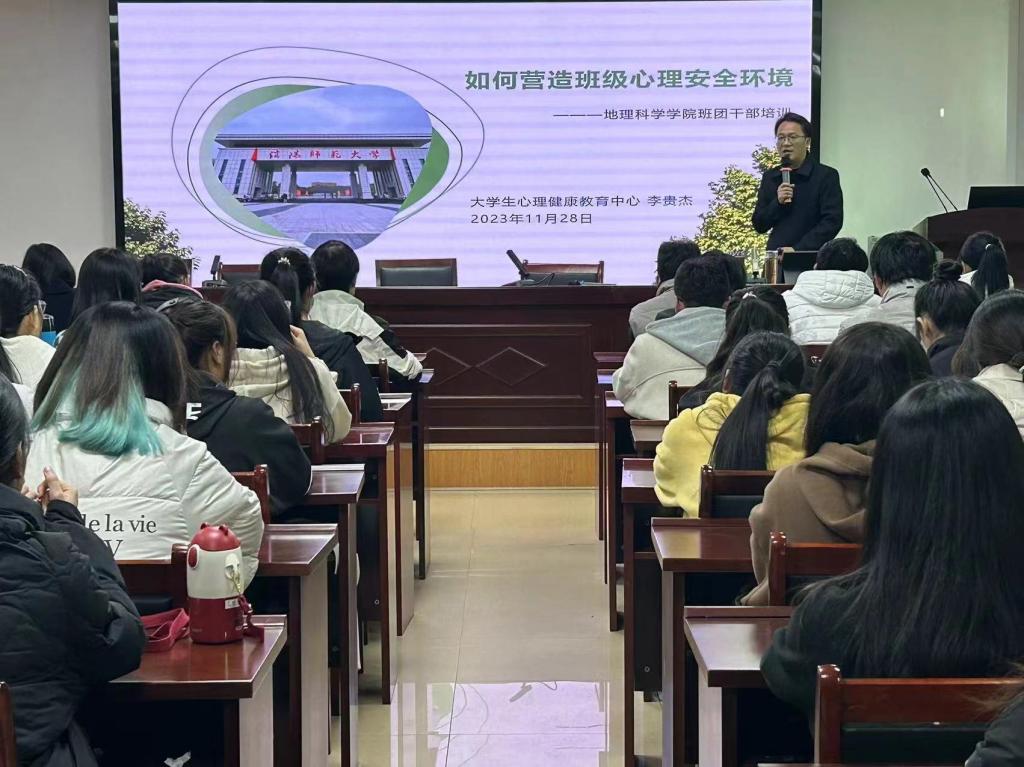 讲座中,李贵杰根据当代大学生的心理特点及其易出现的心理问题,详细分析了学生出现心理问题的原因并“对症下药”地提出了疏导方法。同时也指出在班级的心理健康工作中,班长、团支书与心理委员都有着不可或缺的职责。教导与会的同学们,作为班干部要提升自己的能力,散发正能量去渲染他人,关心身边每个人的状况。李贵杰用生动的语言向老师和同学们传达了心理健康的重要性,引导大家了解并重视大学生的个人心理健康。讲座结束后,与会的同学们纷纷表示受益匪浅,对于心理健康也有了新的认知、体会,会把从讲座中学到的知识落实到实践中去。