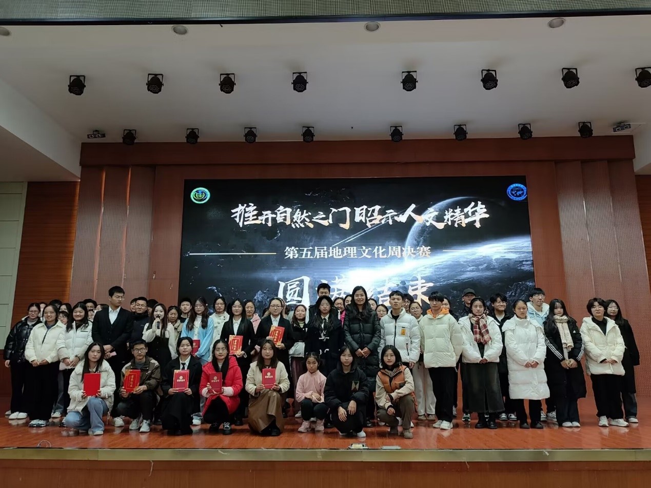 仰望星空,脚踏实地,在浩瀚的宇宙中地球如此的渺小,在绚丽多彩的地球上人类又是如此的脆弱。从古至今,人们热衷于把地理现象变为一切浪漫的地基,为使大家更深入了解地理文化知识,提供一个展现自我,锻炼自我的平台,天文地理爱好者协会特举办了第五届地理文化周系列活动。12月3日开展第五届地理文化周系列活动决赛。在本次决赛活动前期,工作人员进行了彩排,调整设备,确认流程清晰后,开始了正式的活动。本次决赛分为ppt演讲和知识竞赛两个环节,在活动进行中,参赛者大多脱稿演讲,并搭配上丰富的肢体语言,制作的ppt也十分美观,在一些衔接处也穿插了许多引人入胜的视频,吸引了观众的兴趣,讲解了很多关于海洋保护,荒漠治理,天文科普的知识,这不仅仅是一场视觉盛更是一场听觉享受。在知识竞赛环节,参赛者们抢答非常激烈,对地理知识掌握非常牢固,令台下的观众赞不绝口。在ppt参赛者演讲结束后和知识竞赛结束后由现场评委进行评分,最终决出了本次决赛的一等奖,二等奖,三等奖。最后由指导老师李秀美老师讲话,总结本次比赛,并进行点评。