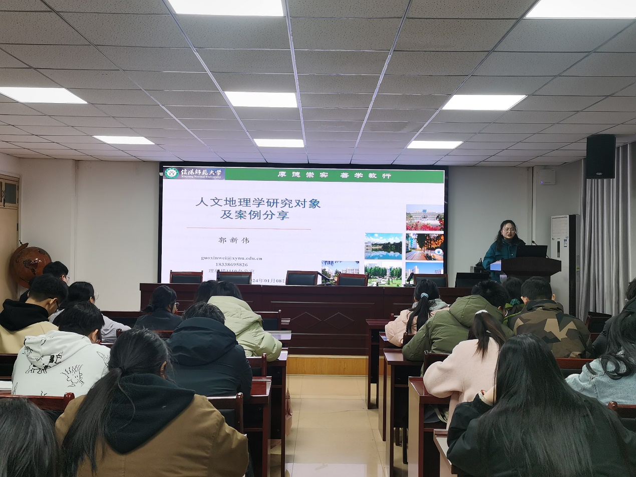 为开阔学生学术视野,营造浓厚科研氛围,1月8日,我院于理科楼南楼410会议室举办了第10期贤岭学术沙龙。郭新伟博士应邀做了题为“人文地理学研究对象与案例分享”的学术报告,研究生80余人参加了报告会,会议由研究生班主任何伟纯博士主持。