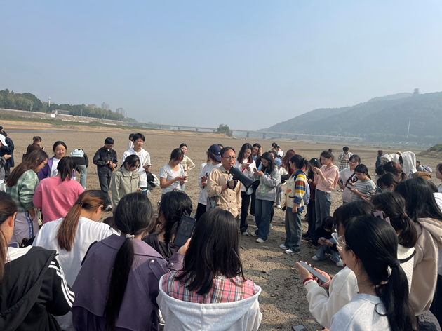 李宗盟老师在河洲榭讲解河流地貌相关知识