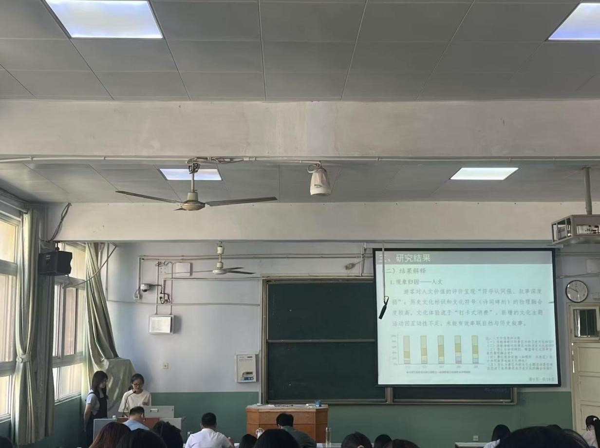 此次汇报以南京实习相关观察点的实地调研为基础,聚焦南京这座千年古都的历史积淀与当代发展,围绕“历史地理与遗址保护、城市规划与空间结构、旅游地理与文化景观、历史记忆与文化传承”四大主题展开。在历史地理与遗址保护板块,学生们以紫金山天文台和江南贡院为案例,探讨了南京在文化遗产保护中的探索与实践。通过梳理紫金山天文台从古代观星遗址到现代科研基地的演变脉络,汇报小组分析了自然地理环境与人类科技活动的互动关系。江南贡院作为中国古代最大的科举考场,其保护修复工程与科举文化展示模式的创新,成为学生研究历史遗址“活化利用”的鲜活样本。