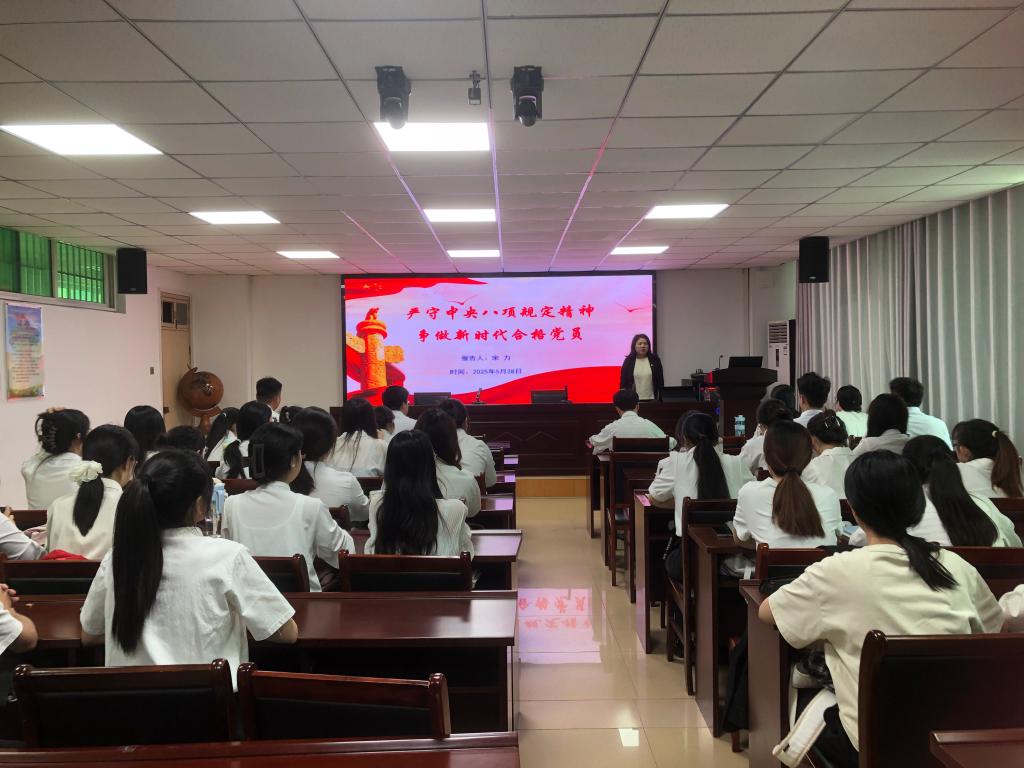 5月28日,我院党委书记宋力于理科楼南410会议室,为2025年上半年新发展党员、2024年下半年发展党员作“严守中央八项规定精神争做新时代合格党员”专题党课。此次党课旨在深化对中央八项规定精神的理解与贯彻,推动全面从严治党向纵深发展。