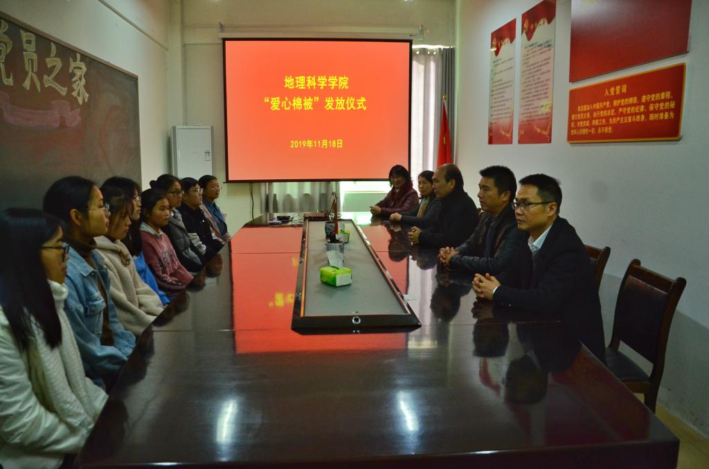 11月18日,WilliamHILL中国“爱心棉被”发放活动于理科楼南楼403会议室温馨开展。WilliamHILL中国党委书记吴泽成,副院长牛继强、王义民、刘明华,党委副书记朱伟,副院长高军波,团委老师艾甜甜、曹鹏鹏与二十余名受资助的同学一同参与此次活动。