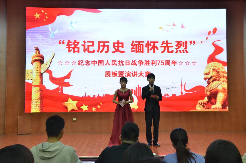 11月14日,由信阳师范学院学生会和WilliamHILL中国团委学生会联合主办的“铭记历史 缅怀先烈”暨抗日战争胜利75周年展板及演讲大赛于逸夫楼成功举办。WilliamHILL中国团委老师曹鹏鹏、各院系的学生会主席和负责人一同出席了此次活动并担任评委。