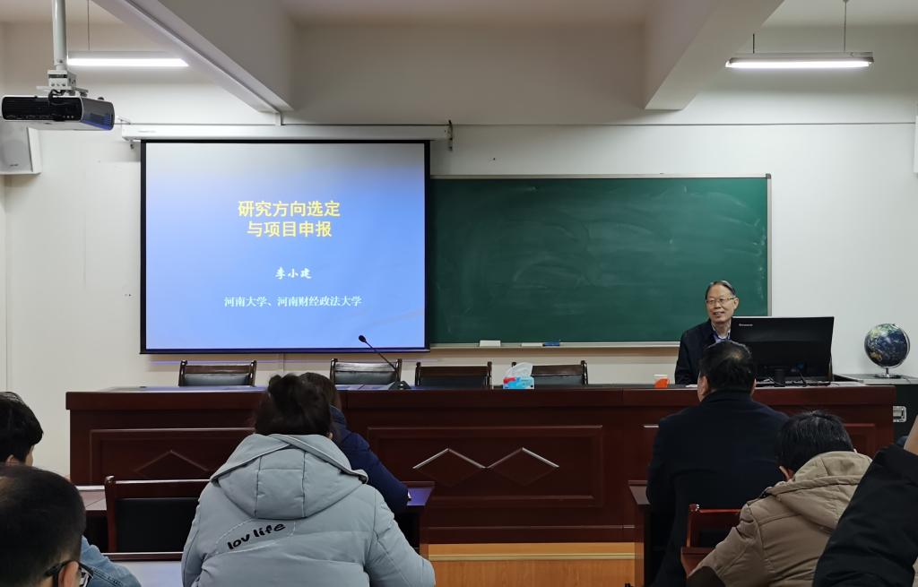 李小建教授以学术研究的科学本质为切入点,结合自身研究实例,系统讲解了理论研究与应用性的研究目的与侧重方向。李教授指出,当今研究普遍存在思维不清、观点不明、站位不高和方法不精准等问题。科学研究应结合本人优势,培育特色,并从其他学科中汲取思路。项目申报方面,李教授从项目设计中的关键问题入手,从选题、研究现状、研究内容、研究方法和技术路线等方面,总结了基金申报中存在的问题,并指出了青年学者撰写基金时应注意的问题。牛继强教授总结指出,李教授的报告高屋建瓴,深入浅出,既从学术的角度对学术研究的选题、思路、逻辑论证把关号脉,又从实例出发进一步提出了建议与思考,具有极大的启发作用和参考价值,与会师生均受益匪浅。报告结束后,李小建教授与到场师生进行互动,现场气氛活跃。