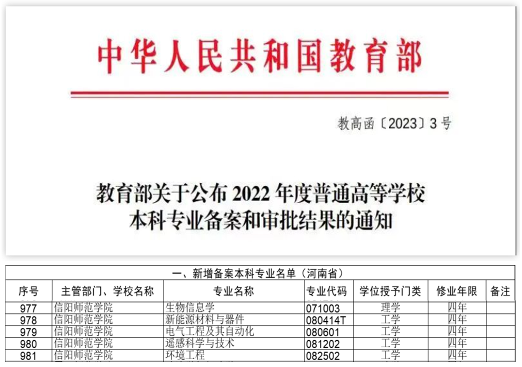 根据教育部近日印发的《关于公布2022年度普通高等学校本科专业备案和审批结果的通知》(教高函〔2023〕3号)。我院成功获批 “环境工程”和“遥感科学与技术”两个本科专业。至此,我院共有地理科学(师范类)、地理信息科学、自然地理与资源环境、人文地理与城乡规划、测绘工程、环境科学与工程、环境工程和遥感科学与技术8个本科专业。
