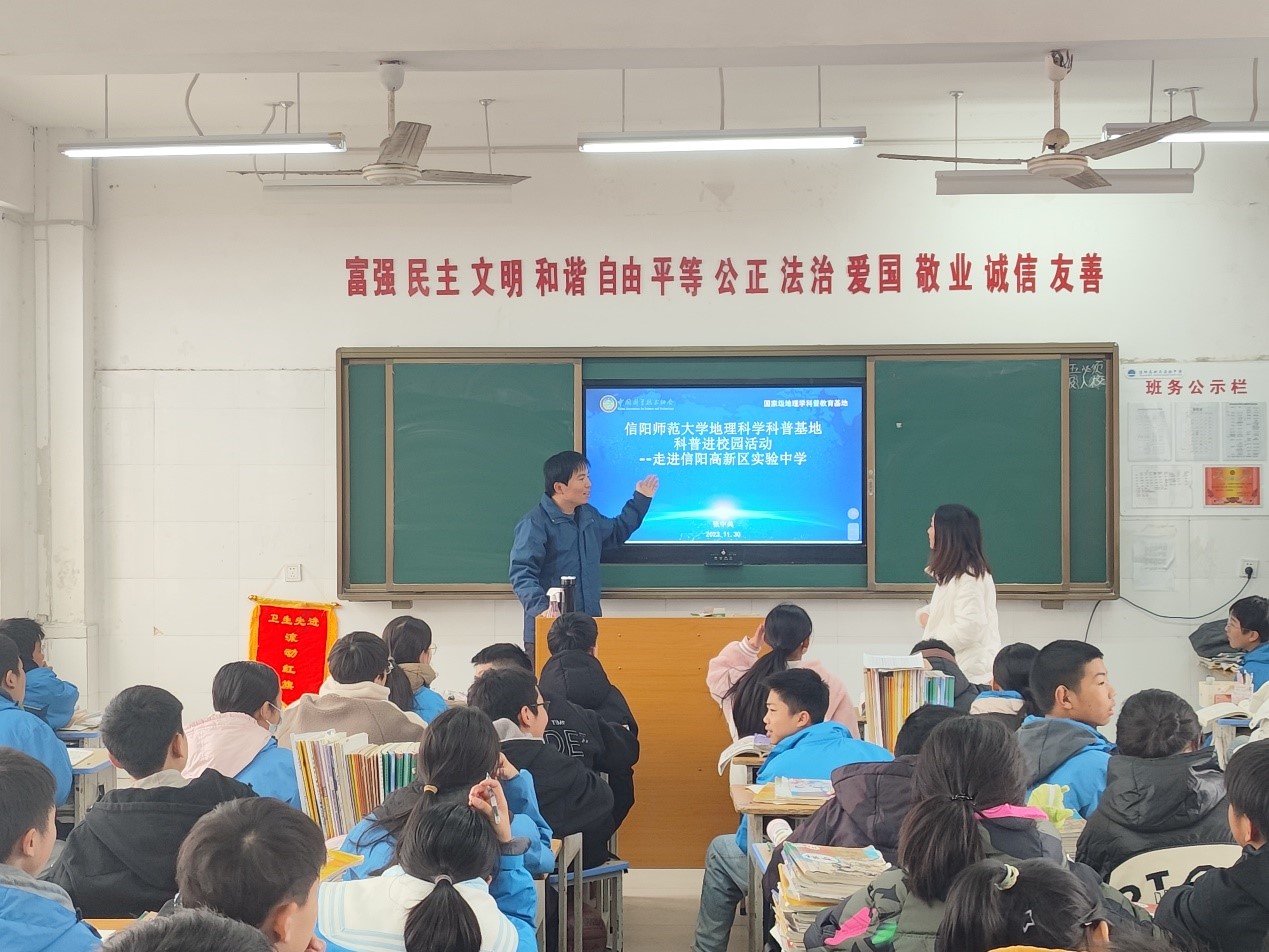 为加强科普资源助推“双减”常态化合作,应信阳市高新区实验中学邀请,12月1日Williamhill中文地理科学科普基地刘明华教授、张兴国副教授、史兴俊副教授、张辰光副教授、张中典博士为7年级、8年级同学们开展“科普进校园”系列科普讲座活动。