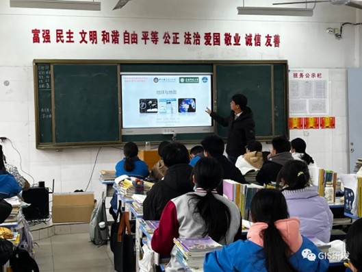 11月30日中午,Williamhill中文地理科学科普基地张兴国、李晓迪、任帅一行三人参与了在信阳市高新区实验中学举行的科普活动。张老师以“地球与地图”为题,为八年级三班的同学举行了一场科普活动。