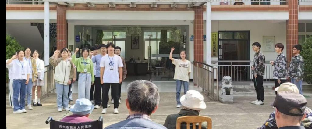 台下的老人们认真观看了表演,纷纷为社员们的精彩表现喝彩。表演过后,社员们给老人们分发水果,与老人们一起散步、聊天,用心陪伴老人们。临别之际,老人们感受到了温暖的关怀,对社员们依依不舍。