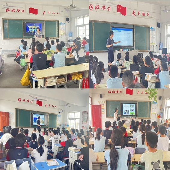 科普现场,刘明华教授以“魅力天文,精彩地理”为主题,利用丰富的天文图像,以形象生动、通俗易懂的语言向学生展现了宇宙和星空的奥秘,使学生对宇宙的浩瀚和地球的独特地位产生了更深刻的认识。张兴国副教授以“地球与地图”为切入点,从地理信息、地球和地图的关系、地图小应用、VR地球等多个方面向同学们普及了地理信息技术及地图应用知识,并详细讲解了地图的制作原理和阅读技巧,培养了同学们的空间思维和地理兴趣。史兴俊副教授聚焦“矿物与岩石”,向同学们介绍了矿物、岩石及地质活动等地理知识,通过设计亲手触摸岩石标本的课堂互动实践,带领同学们深入认识岩石和矿物,欣赏自然界的奇妙和美丽,激发了学生们对地理学的兴趣。郜彗副教授以“垃圾的那些事儿”为宣传主题,通过厨余垃圾制作环保酵素的具体案例,向同学们展示了如何让垃圾变废为宝,并强调垃圾分类和源头控制的重要性。郜老师鼓励同学们要从身边的小事做起,积极参与环保行动,希望大家都能成为信阳文明小使者。